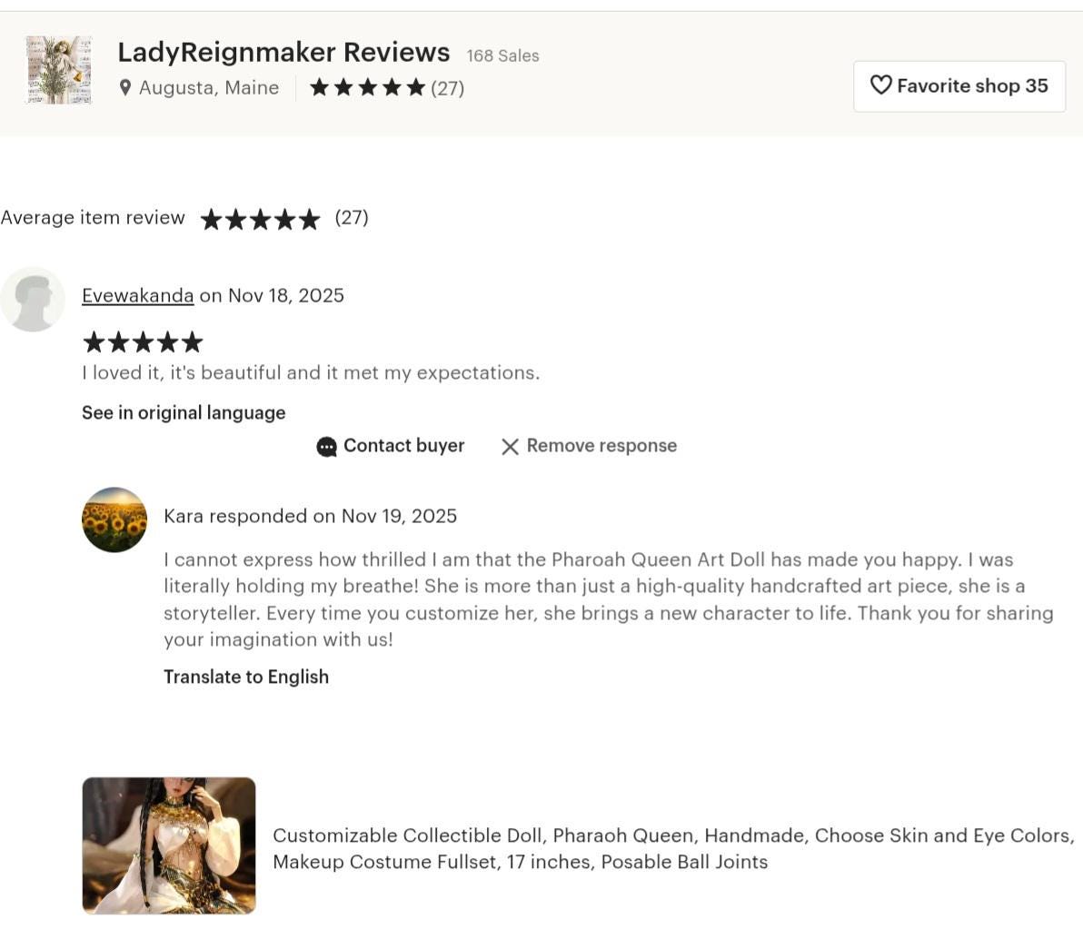 Thanks for the kind words! ★★★★★ "Me encantó es hermosa y si cumplió con mis expectativas." I loved it, it's beautiful and it met my expectations. Evewakanda https://etsy.me/4olqSZi #etsy #resin #christmas #egyptianqueendoll #handmadedoll #extratalldoll #fantasydoll #ancientgoddessdoll #heirloomdoll #poseableartdoll