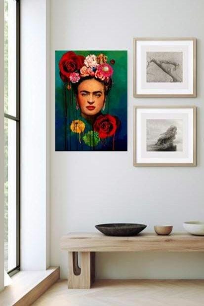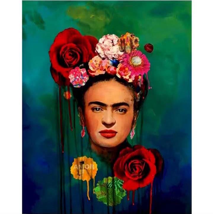 Paint by Number Kit, Frida Kahlo, LINEN Canvas, Framed or Unframed, Multiple Sizes, Vibrant Colors, Gift Mexican Art