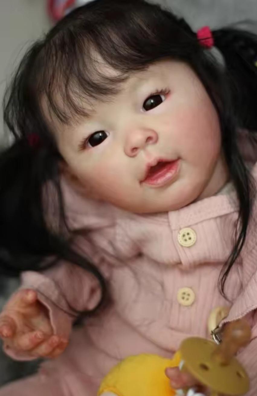 --A little month old Asian infant girl doll that is handmade, in a hugable size 24 inches / 60 cm. Realistic artistic representation of daughters, granddaughters, sisters, and real life baby girls. The head and limbs are resin, and the body is fabric.
